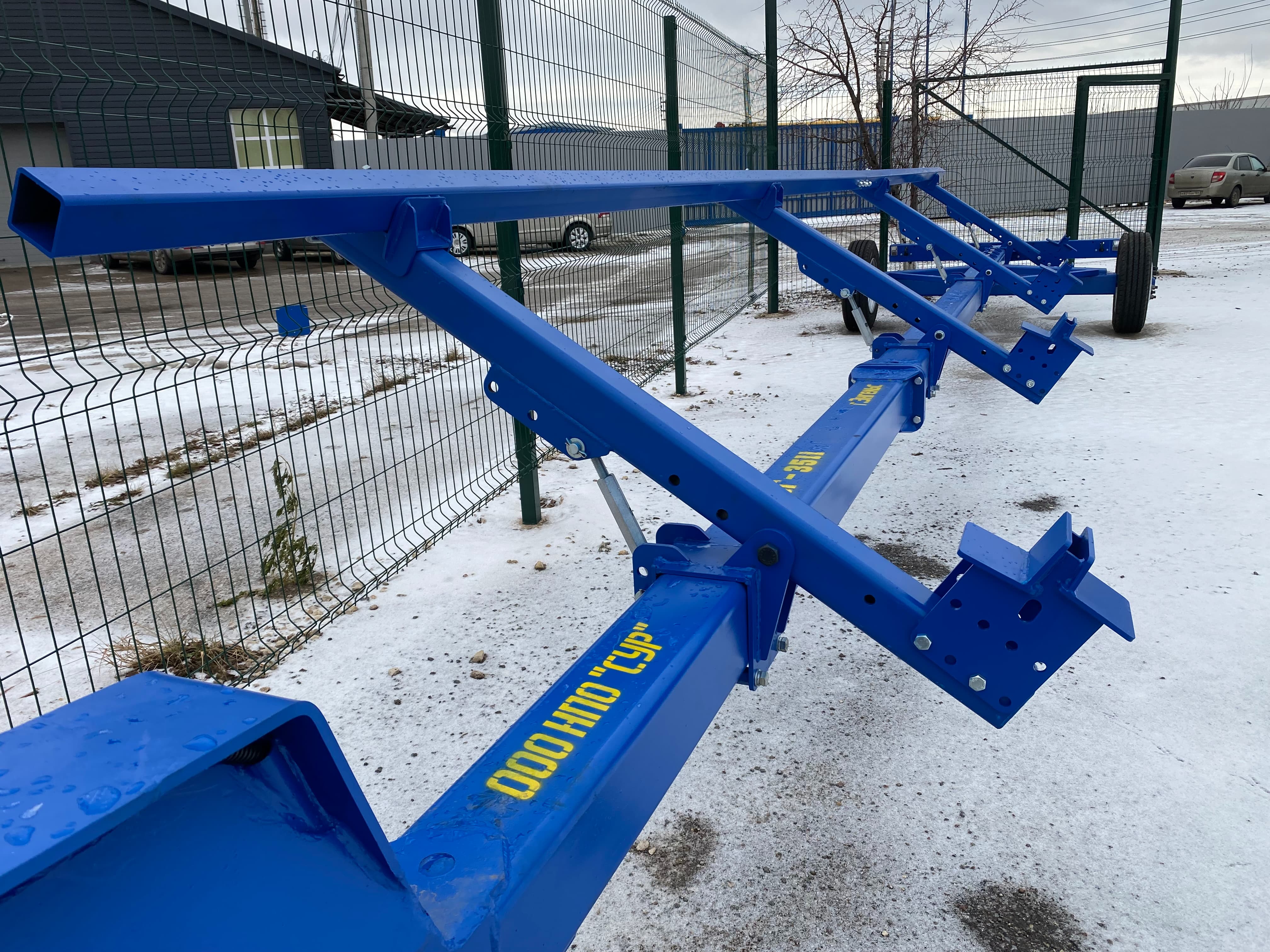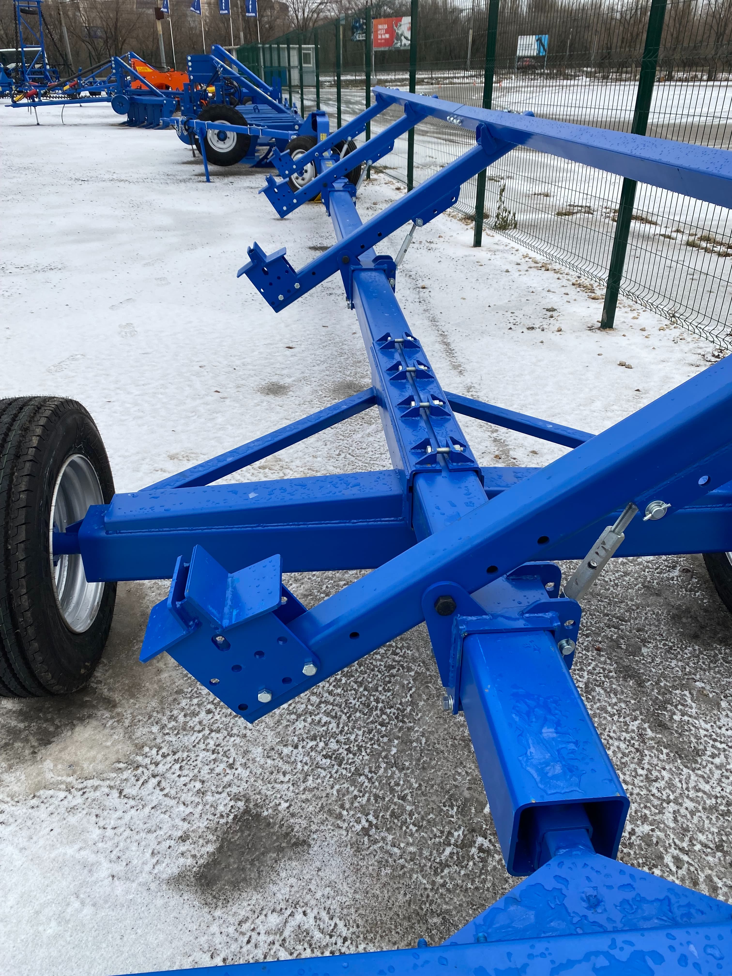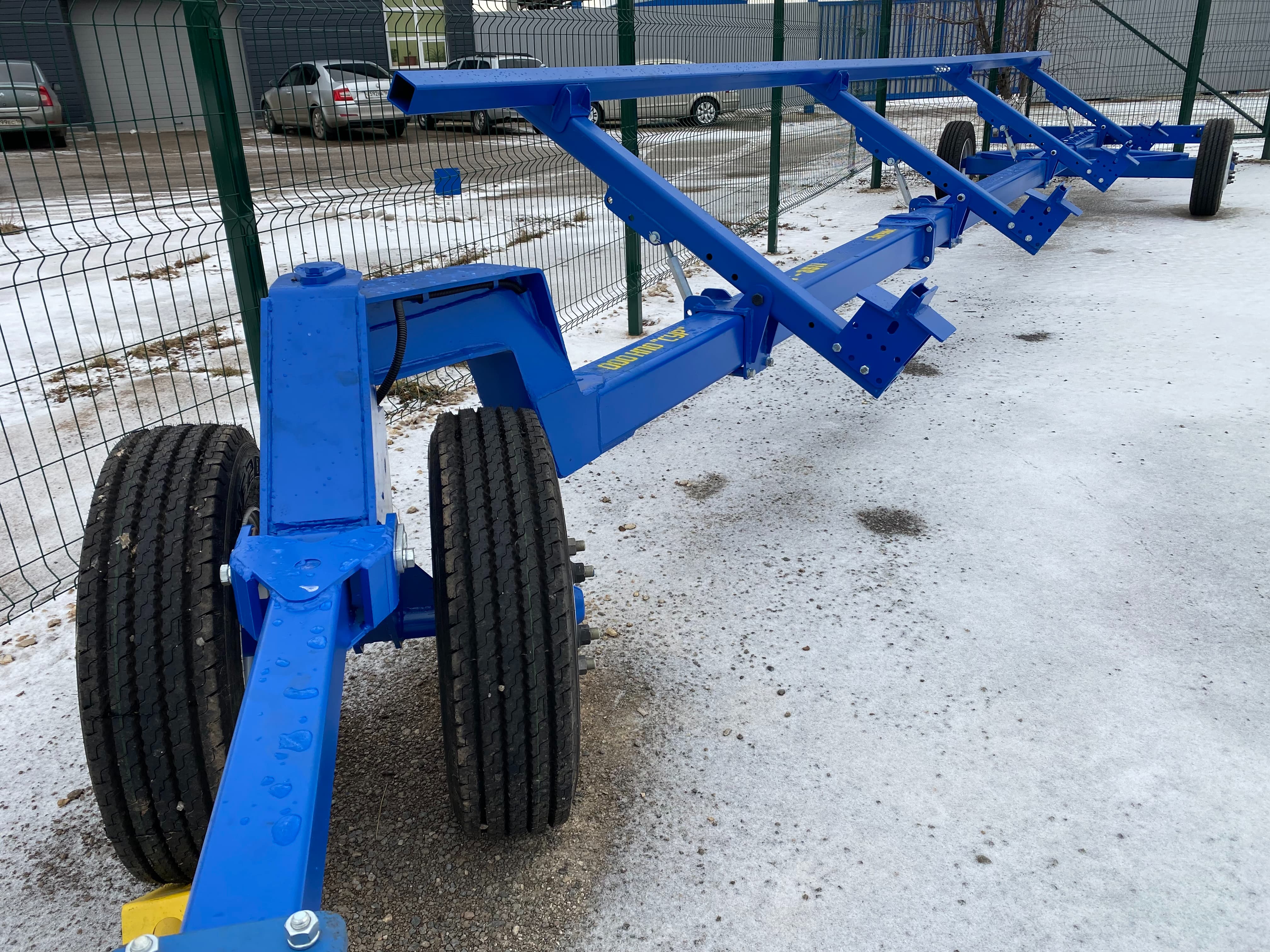 Тележка применяется для перевозки жаток шириной захвата от 5 до 9м с массой не более 3500 кг по дорогам общего назначения, полевым и внутрихозяйственным дорогам.
