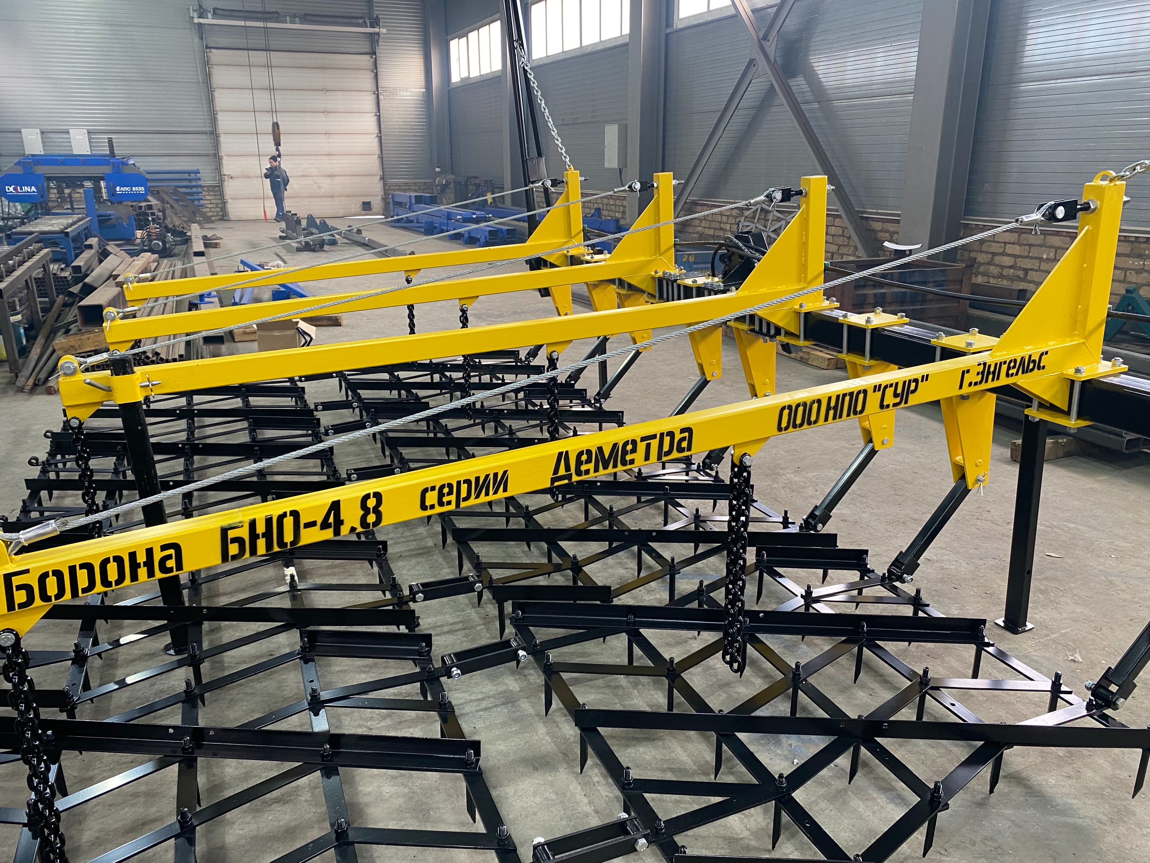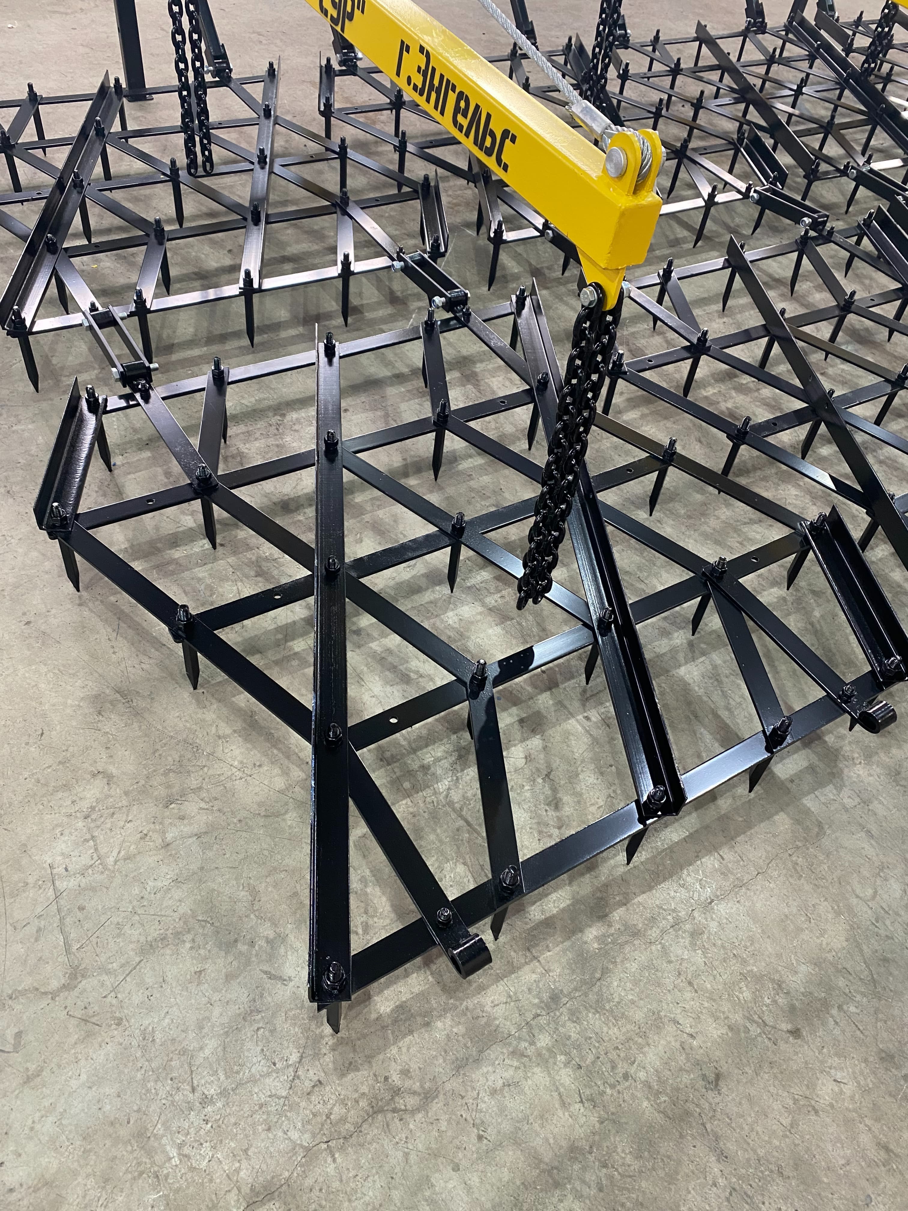 Усиленные боронки ООО НПО «СУР» БЗСУ изготавливается из листа стали толщиной 8 мм, уголок 5 мм. ,масса 55 кг в количестве 8шт. ширина 1200 мм