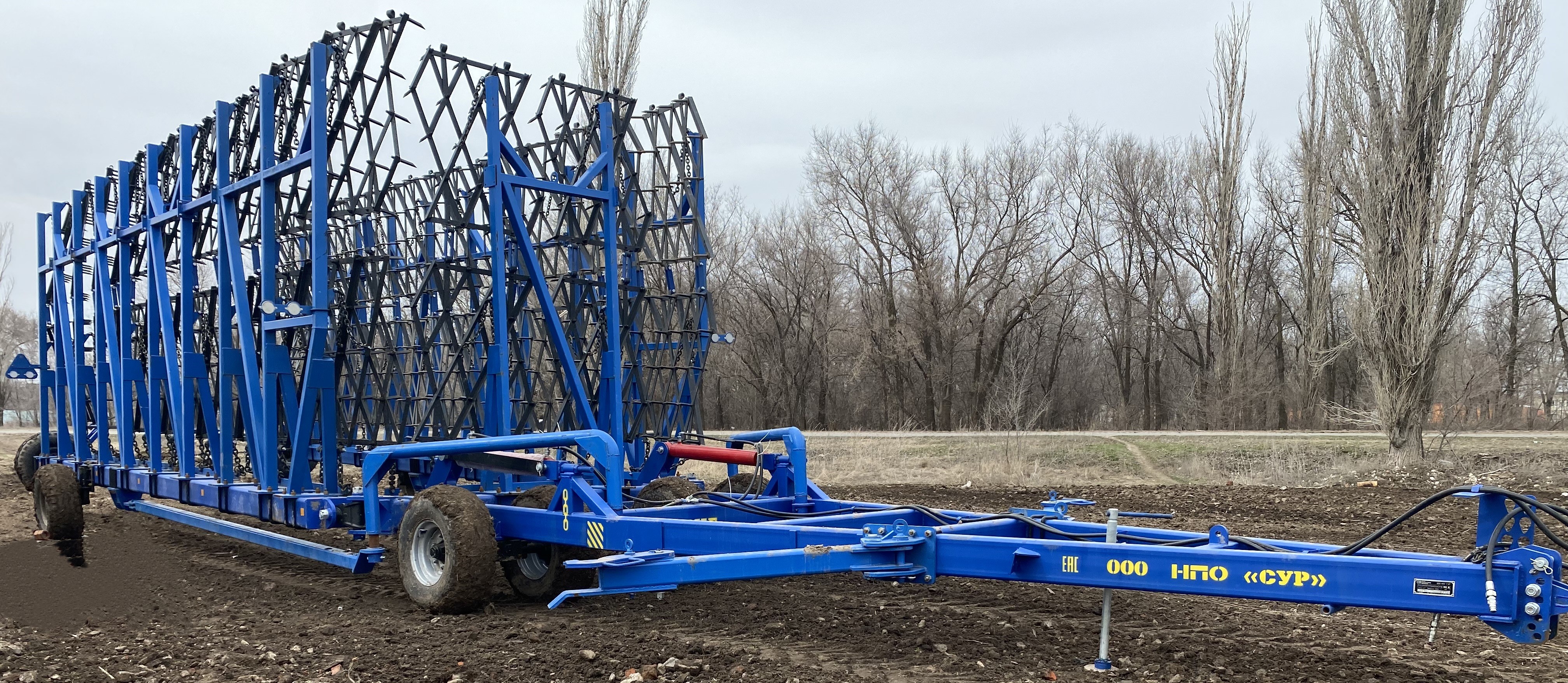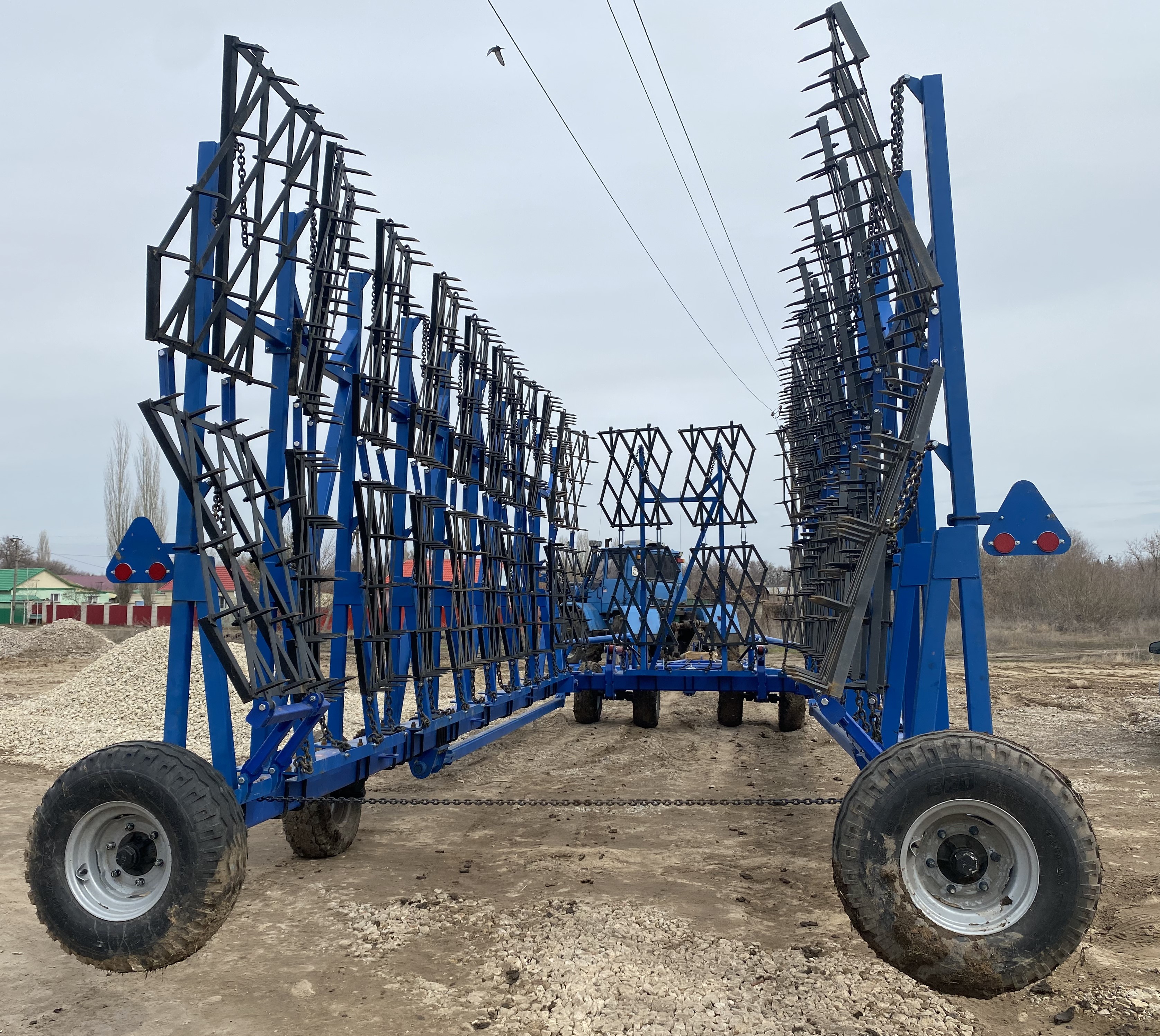 Борона прицепная гидрофицированная БПГ используется для закрытия влаги в период ранневесеннего боронования с одновременным распределением пожнивных остатков, обработки паров, рыхления поверхностного слоя почвы (до 8 см). Борона БПГ обеспечи-вает выравнивание поверхностного слоя почвы, уничтожение проростков и всходов сорняков, разбивает комки. Орудие агрегатируется с тракторами мощностью от 150 л/с до 500 л/с . Большая ширина захвата позволяет обрабатывать поля с большей производительностью. А это экономия моторесурса и затрат на топливо.
