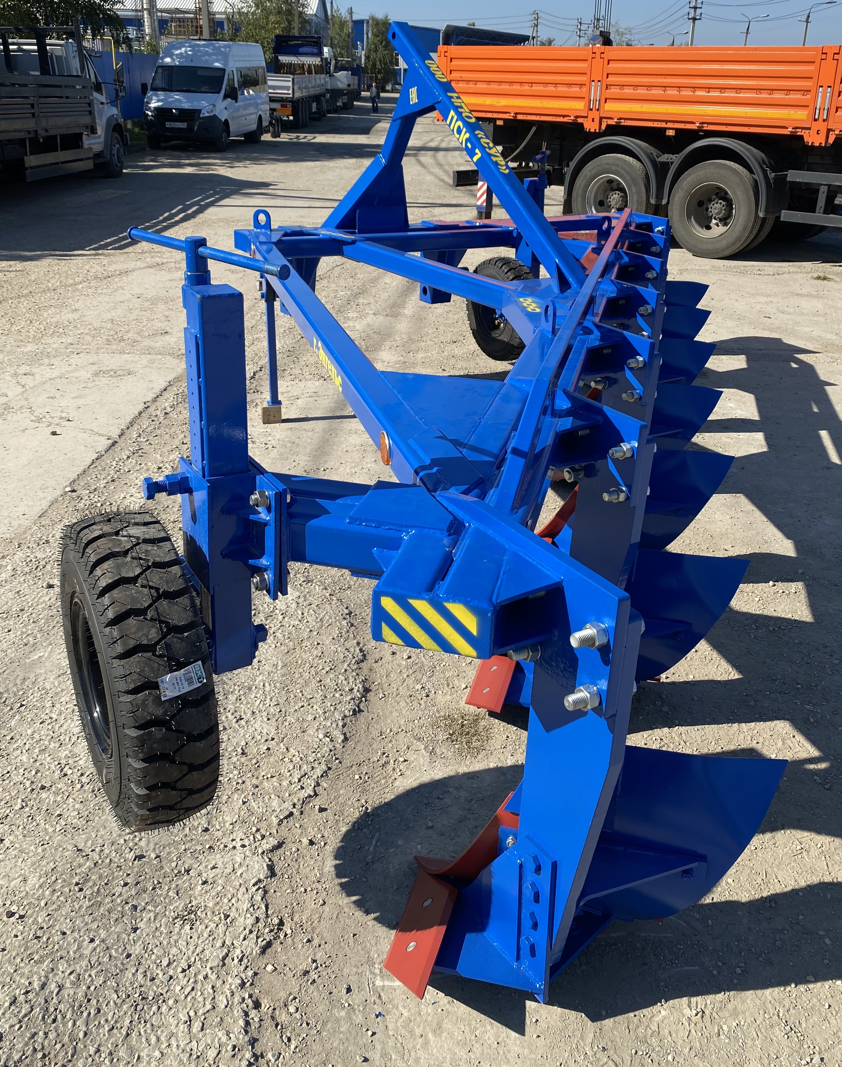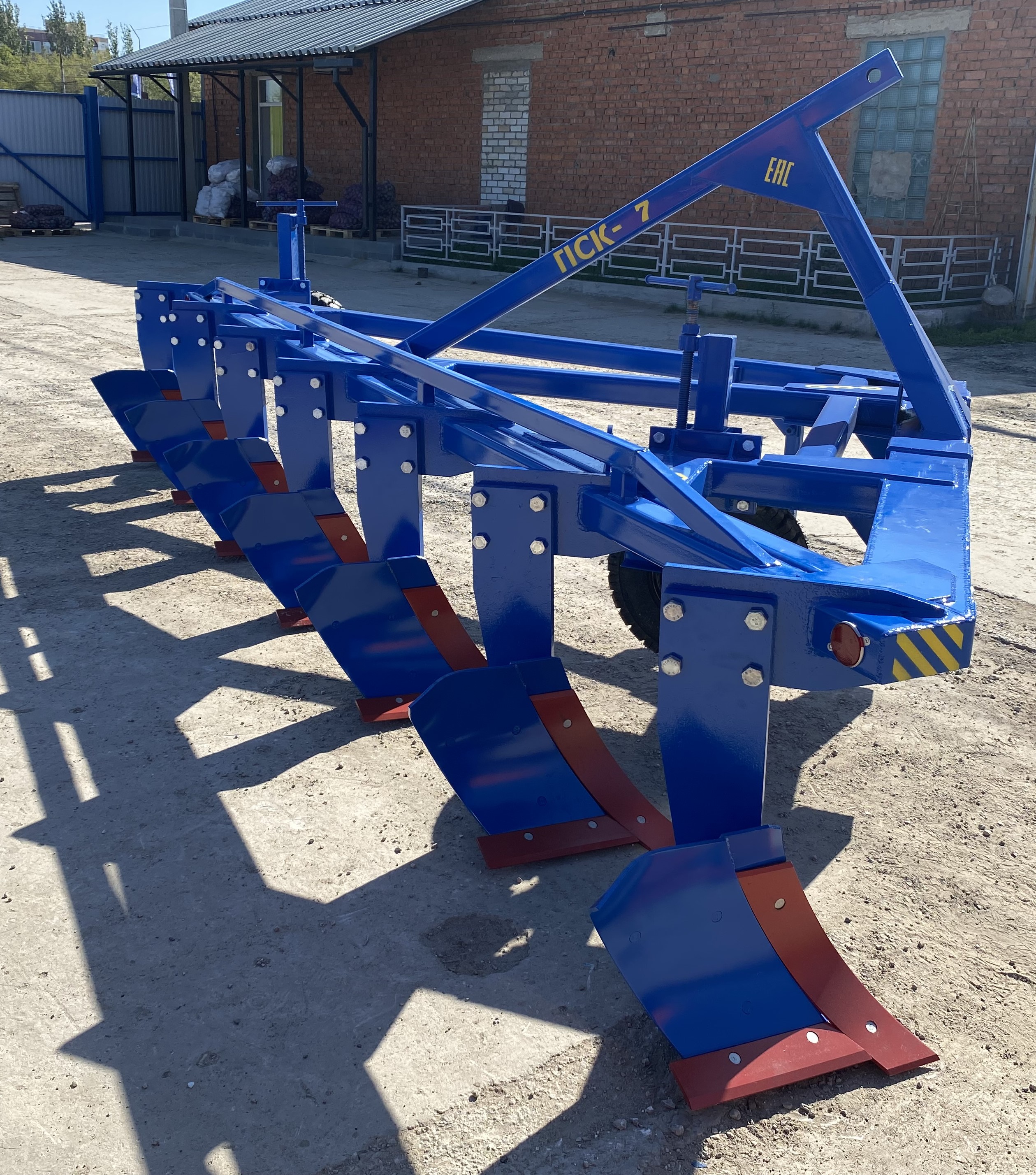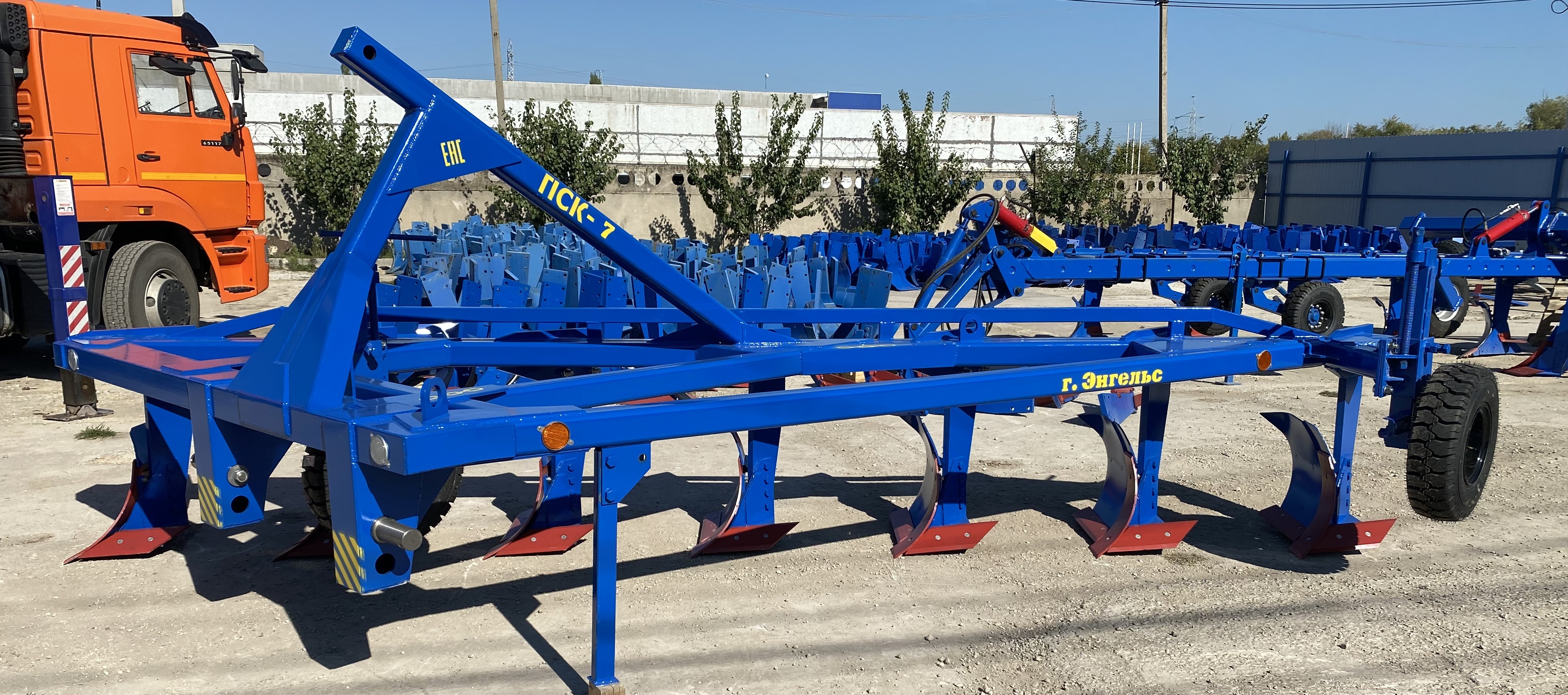 Плуг навесной семикорпусный марки ПСКу-7 (плуг скоростной комбинированный универсальный) предназначен для пахоты под зерновые и технические культуры, на глубину до 30 см почв, не засорённых камнями, плитняком и другими препятствиями.