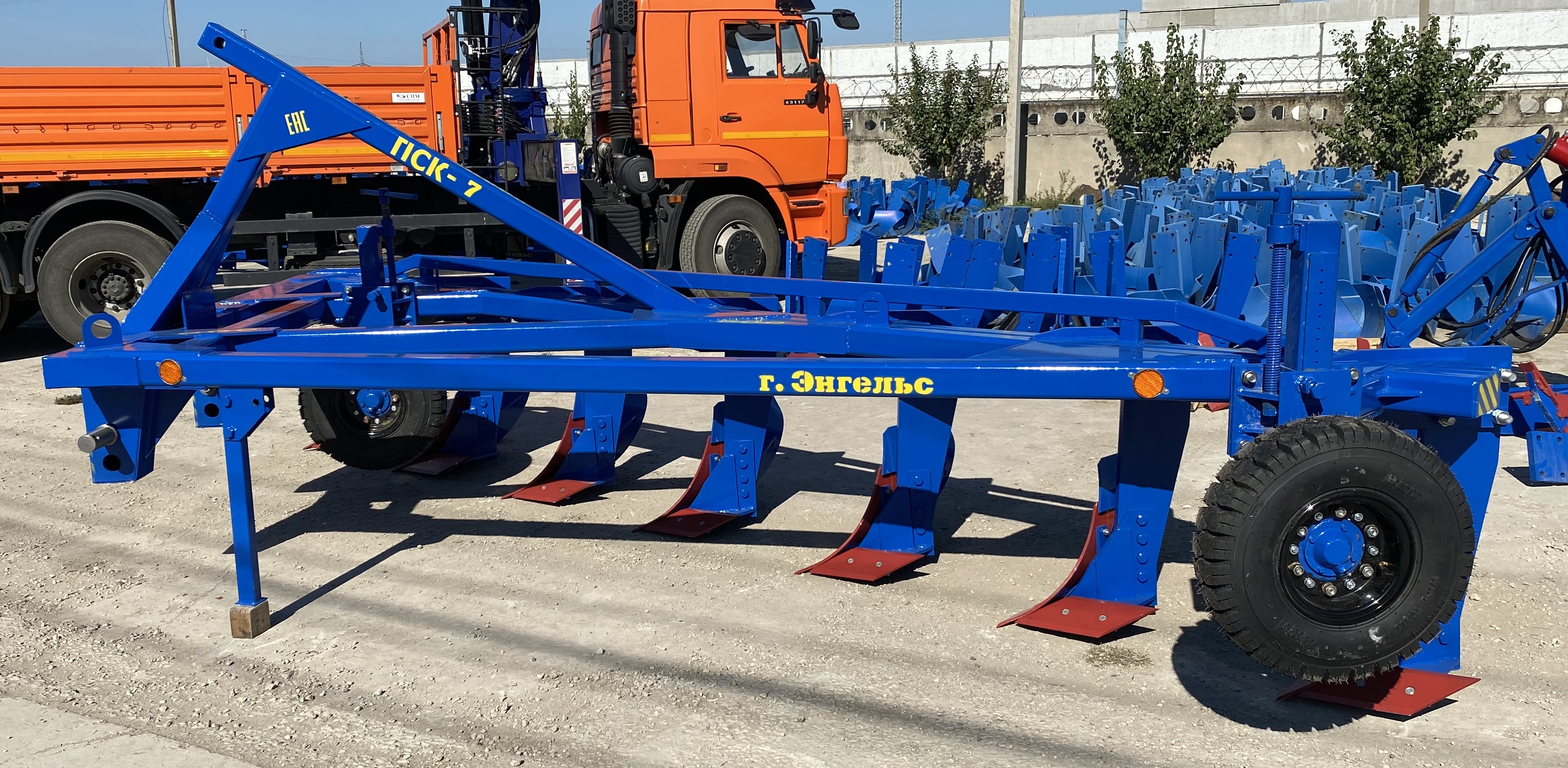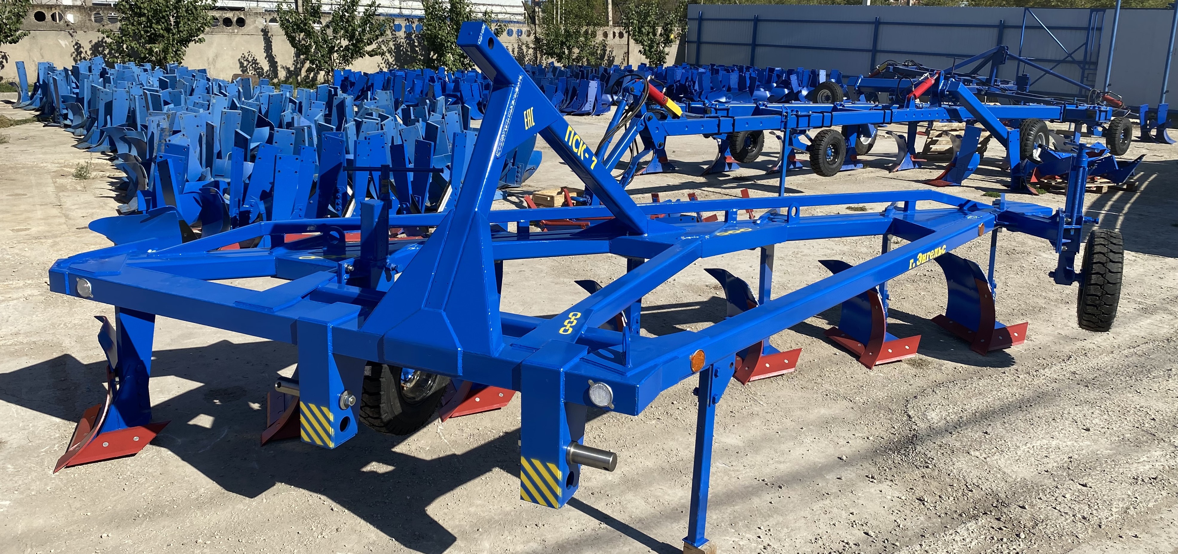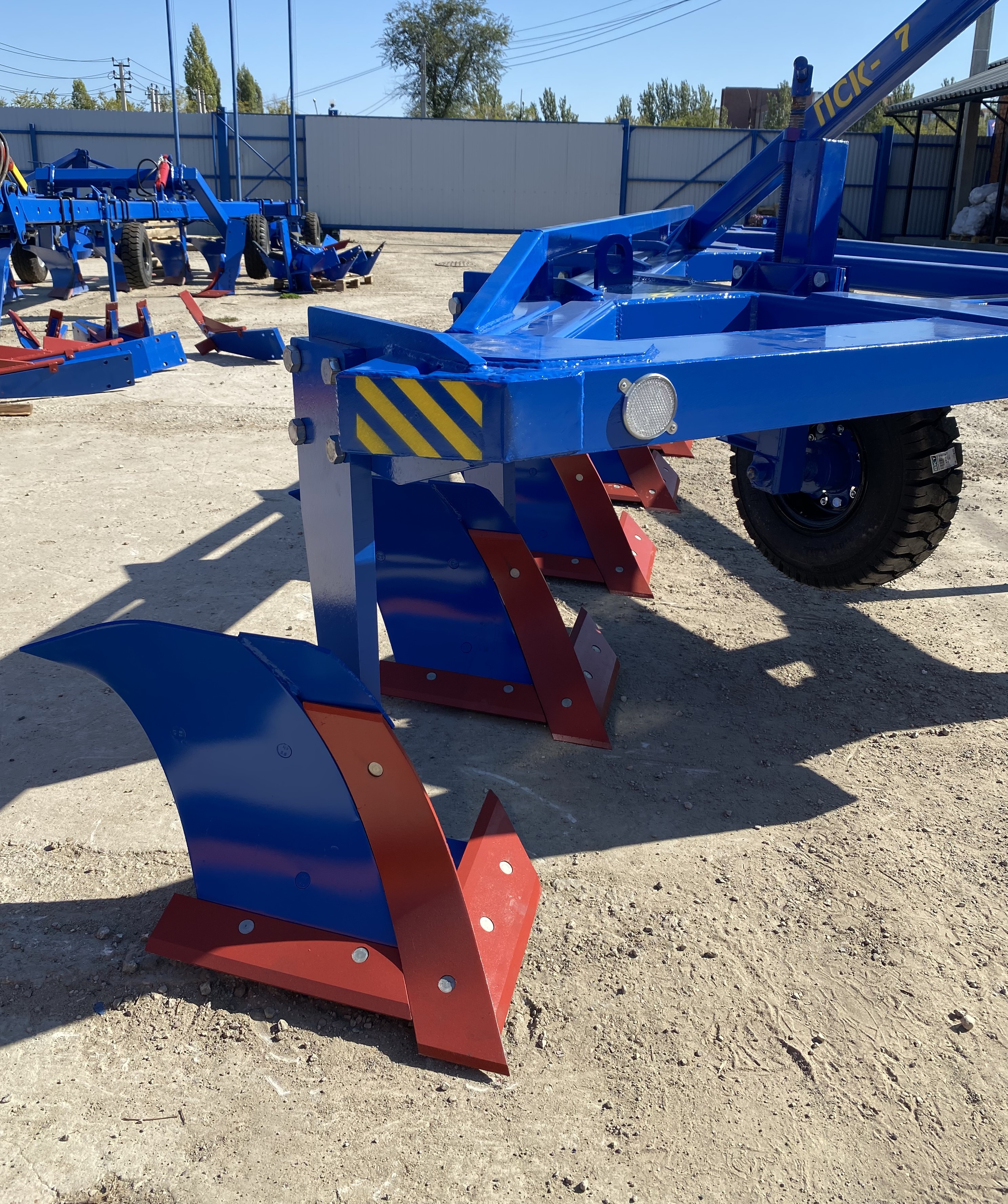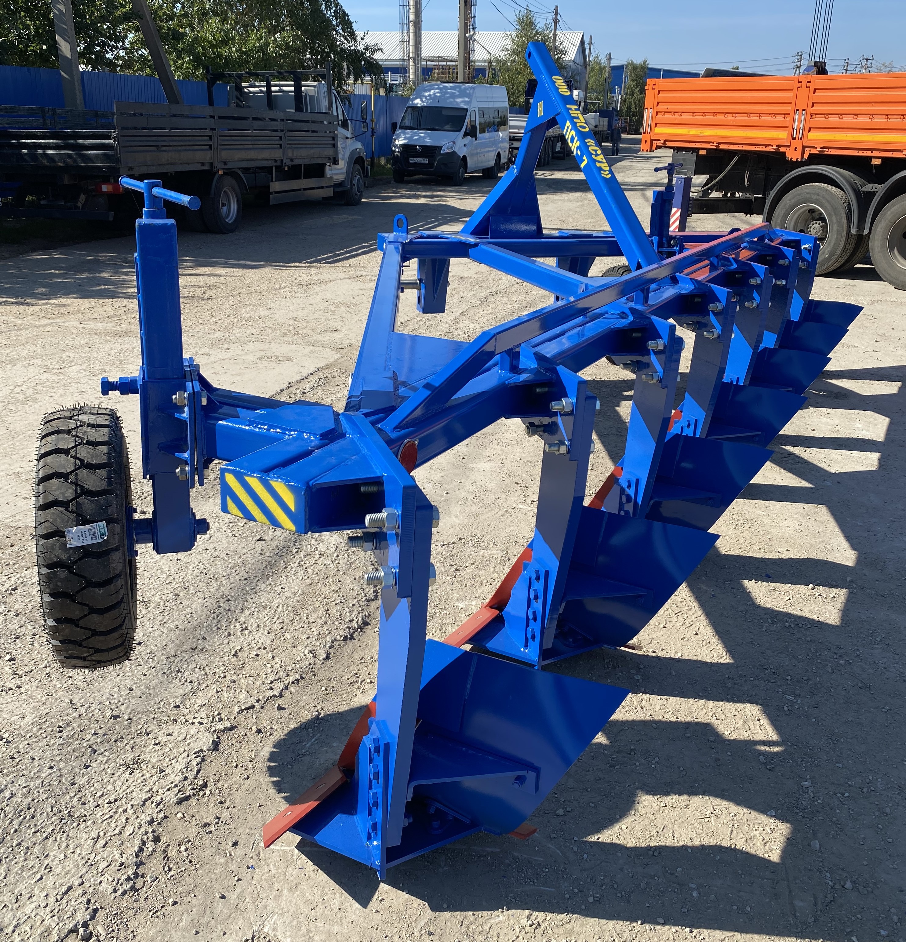 Плуг навесной семикорпусный марки ПСКу-7 (плуг скоростной комбинированный универсальный) предназначен для пахоты под зерновые и технические культуры, на глубину до 30 см почв, не засорённых камнями, плитняком и другими препятствиями.